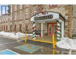 This meticulously restored 19th-century woollen mill harmoniously integrates historic stonework and industrial elements with contemporary boutique condominium living, distinguished by a magnificent waterfall and river setting. It presents a truly unparalleled residential environment. This highly sought-after one-bedroom-plus-den residence has been scrupulously maintained. Immersed in natural light, the interior honors its rich milling heritage with striking high ceilings and deep window ledges. The eat-in, updated kitchen features an expanse of counter space & storage in a modern & bright setting that flows seamlessly into the principal living area. Expansive windows in both the living room & bedroom afford tranquil, serene vistas of the waterfall and the Mississippi River. The exceptional nature of this suite is underscored by the privacy it offers, with no adjacent residences above or across the hall. Only a select number of Millfall residences benefit from this direct river-view access. The confluence of historic character, abundant natural illumination, and judicious updates positions this as one of Millfall's most distinctive homes. Residents are privy to a comprehensive suite of exceptional amenities, including a fitness facility, common & recreation rooms, a library, a workshop, kayak storage, an outdoor gazebo by the water, a BBQ area, along with a rentable guest suite, supplementary storage & locked bike room! Renowned for its breathtaking sunsets, beautiful woods, immaculately maintained grounds, safety & privacy, the community provides an elevated lifestyle mere steps from Almonte's vibrant downtown. Inside 3rd floor daily mail delivery in personal key locked mailbox. Located on the 3rd floor in the Annex with 3rd floor parking, no need for elevator use. Join the Friday night social hour, weekly fitness classes & movie nights! (id:47351)