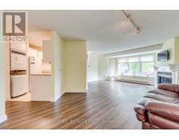 Welcome to Trinity Courtyards in the neighborhood of Corktown, Toronto. This charming 800 sq ft low-rise condo is just steps to the trendy Distillery District! Great opportunity to be in a 3-storey building on the first floor that feels like a house. Large bay window floods this space natural light. Laminate flooring throughout, electric fireplace, large primary bedroom with walk-out to private balcony overlooking gardens. Amenities include gym, bike storage, party room, rec room, sauna, visitor parking and bbq permitted. Close to shopping, restaurants, parks, etc. Utilities additional. March 15 or April 1. 1 parking included. In-suite laundry -Exclusive boutique building -only 18 suites total -98 walk score! Steps to everything (id:47351)