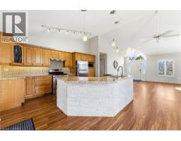 Beautifully maintained 2+2 bedroom, 2 bathroom all-brick bungalow located in the highly desirable Cameron Downs neighbourhood. The bright, open-concept main floor offers exceptional space, featuring a large kitchen, living room, and dinette area, along with two generously sized bedrooms, a 3-piece bathroom, and a versatile office space. The kitchen is well-appointed with ample cupboard space and granite countertops, including a large island with seating. Sliding doors lead to a spacious back deck and a fully fenced, professionally landscaped backyard—perfect for relaxing or entertaining. Cathedral ceilings and abundant natural light enhance the airy, open feel of the main level. The primary bedroom includes a walk-in closet, oversized doors to the backyard, and ensuite privilege to a 3-piece. The fully finished lower level adds excellent living space with two additional bedrooms, a large recreation room, a 4-piece bathroom, and a laundry area, along with plenty of storage. Oversized double driveway and attached double garage with inside entry, featuring radiant gas heat. Equipped with a security system and 200 amp electrical service. Situated on a quiet court, close to schools, parks, and amenities. Book your private showing today! (id:47351)