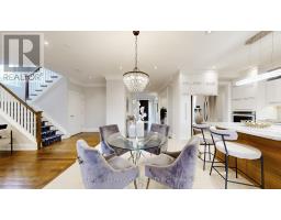 Welcome to 1 Dustan Cres. A approx. 12 yrs. old new Custom built contemporary 4+1 bedroom, 5-bath home rare 2 car garage w/ door to the house. The beautifully maintained landscaping and a charming covered front porch. Inside, a bright tiled foyer opens to expansive 9ft ceiling principal rooms featuring rich hardwood floors. A front-facing sun filled office provides an ideal workspace overlooking a parkette. At the heart of the home lies the open-concept kitchen, breakfast area, and family room. The chef-inspired kitchen boasts sleek custom cabinetry, quartz countertops, premium appliances including a gas range, island with Wine chiller. The adjoining family room is anchored by a stone-surround gas fireplace, built-in shelving, and direct access to the backyard. Upstairs, the primary suite serves as a luxurious retreat with a Juliette balcony overlooking the yard, a two-way fireplace, a custom walk-in closet, heated floor spa-style 6-piece ensuite featuring a freestanding tub, double vanity, and glass-enclosed rain shower. Three additional bedrooms each showcase their own character-accent walls, and elegant lighting-accompanied by two beautifully designed full bathrooms. A stylish laundry room with mosaic backsplash , washer and dryer completes the 2nd floor for convenience. The finished basement with separate entrance adds exceptional versatility, offering a spacious recreation room, dining area, built-in kitchenette, private bedroom, 3-piece bath with walk-in shower, and a dedicated office space-ideal for guests, multigenerational/in law living, or entertaining. Outdoors, the fully fenced backyard is a serene private escape, featuring dual-tiered decks, a stone patio, lush lawn, inground sprinkler system, mature trees, and a garden shed-perfect for summer entertaining. Only 2 min walk to a park. Minute drive to DVP, a short drive to Downtown or Hwy 401 and close to future Ontario line. Don't miss this beautiful home where memories are waiting to be made. (id:47351)