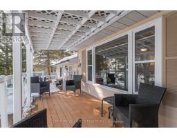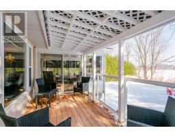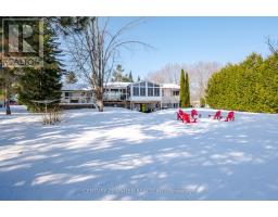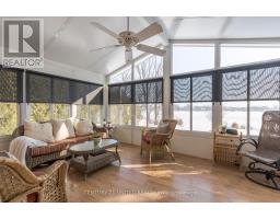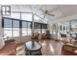 Welcome to a home where everyday life feels like a getaway! Set within a quiet bay on Emerald Isle and connected to the Trent-Severn Waterway, this property offers the opportunity to live directly on one of the Kawarthas' most loved boating systems! Cruise between lakes, watch the sun shimmer across the water & simply enjoy the peace from your own backyard. Step in from the covered front porch to a sunlit foyer leading naturally into the living area & updated kitchen featuring quartz countertops, stainless steel appliances, and sleek finishes. The open living and dining room is designed to capture the lake! Wall-to-wall windows and doors invite the scenery inside and extend out to the 3-season sunroom and covered upper deck, part of a 2-tiered outdoor space ideal for relaxing and entertaining. The main level offers 3 bedrooms including an oversized primary, a beautifully updated 3-piece bath with large tiled shower and double sinks, plus a convenient powder room and direct access to the attached 1.5-car garage. The walkout lower-level blends indoor comfort with easy outdoor access, featuring oversized windows, newer laminate flooring, and a cozy wood stove. - the perfect place to unwind after skating, snowmobiling, or a day spent on the water. A spacious 4th bedroom overlooking the lake, generous storage/utility space plus the potential for an additional bath. With desirable south-east exposure, the home is filled with soft natural light and warm sun well into the afternoon. Set on just over 0.5 acre with a gentle slope to the shoreline and 121 ft of waterfront, the calm protected bay is ideal for kayaking, fishing, and relaxing lakeside among deer, swans, and year-round wildlife. Quiet mornings, endless boating, and peaceful evenings under the stars - all just a short drive to Peterborough amenities. A true year-round waterfront lifestyle. (id:47351)