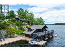 Discover the rare magic of Onaway Island, an iconic private retreat in the heart of Muskoka. Encompassing over 2 acres and an astounding 1,320 feet of pristine shoreline, this island sanctuary offers an unrivalled blend of classic Canadian lodge craftsmanship and timeless Americana charm.The main four-bedroom cottage is a work of artwhere bark-stripped columns, exposed rafter tails, and a hand-laid stone fireplace evoke the character and warmth of a bygone era. Expansive lake views fill every room and porch, while a Muskoka room and a private master wing with ensuite elevate the living experience with comfort and privacy.Outdoors, enjoy breathtaking sunrises and sunsets, explore scenic island trails, and spend your days swimming in hidden coves or leaping from sun-soaked rocks. The oversized three-slip boathouse includes second-storey living space and extensive docking, offering room for guests and watercraft alike. Arrive with ease by boat or by airyour private helipad awaits.With a bocce court nestled on the western side, winding pathways, and panoramic vistas in every direction, Onaway Island is more than a propertyits a lifestyle of heritage, tranquility, and refined recreation. Offered fully turnkey, this once-in-a-generation offering invites you to live Muskoka at its most memorable. (id:47351)