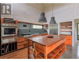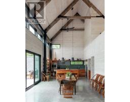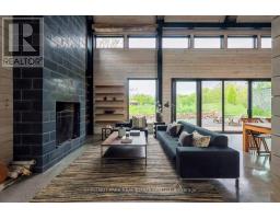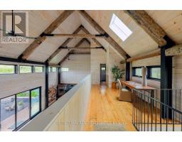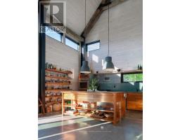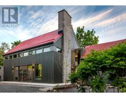 "CREEK HOUSE ESTATE" Without question, this is one of Prince Edward County's premier estate properties, much admired by many, and beautifully developed by its current owners. It offers true historic charm plus dramatic modern elements, set among farmer's fields and vineyards, nestled in the hamlet of Hillier. A long driveway enters the property and continues to the rear of the 2-acre lot. To the left as you enter, an1865 farmhouse, renovated in 2004-5, serves as a guest house. The driveway continues past a large detached three car garage, and to the left are the vestiges of two historic buildings: the smithy and the mill. These structures offer a wonderful opportunity for anyone interested in local history and looking for a great project. Crossing the bridge over Slab Creek one sees the star of the property: "CREEK HOUSE", a striking architectural achievement which ties an original 1910 cabin to a dramatic vaulted space creating a 2100 sq ft house. Two rooms in the original cabin open to the new space: a strikingly beautiful vaulted house with double height ceilings, generous fenestration and wonderful natural light. The post-and-beam construction uses locally fabricated I-Beam steel posts and 100 yr old wood beams reclaimed from a nearby barn. The floors are mostly concrete except for hardwood in the kitchen. The chef's kitchen features Thermador appliances, concrete countertops and sink. The island and cabinetry are crafted of locally milled Black Cherry. The great room is enhanced by a floor-to-ceiling fireplace, and huge sliding doors leading to a generous terrace. The upper floor is an entirely private primary suite with a dressing area, office space and a 4-piece bath. Creek House sits on almost 2 acres of a naturalized landscape with lovely views over the adjoining farms and barns. This as an outstanding opportunity to put down roots in the County, to honour the history of this remarkable property, and to create a wonderful homestead for generations to co (id:47351)