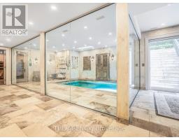 Welcome to 1 Suncrest Drive, an extraordinary estate in Toronto's exclusive Bridle Path neighbourhood. This custom-built masterpiece by Keystone Group offers over 8,500 sq. ft. of luxurious living space, thoughtfully designed for elevated family living and sophisticated entertaining. Featuring 5 spacious bedrooms, including a private nanny's quarter, 2 offices, and 2 elegant powder rooms, this home offers the perfect balance of comfort and functionality. The grand 21-ft. foyer with its custom crystal mosaic skylight introduces the stunning quality of craftsmanship found throughout. Heated floors in all bathrooms and the entire basement provide year-round comfort. The gourmet kitchen, designed for the discerning chef, includes a La Cornue gas range, Calacatta marble countertops, a walk-in pantry, and a wine fridge, ensuring its perfect for both intimate dinners and grand celebrations. The open-concept living area is enhanced by a built-in sound system and a gas fire pit, creating the ideal environment for entertaining. The expansive 2,630 sq. ft. luxury basement retreat is a true highlight, featuring a wet bar, home theatre, indoor pool with jet system, sauna, and wood-burning firepit. With a walk-up to the beautifully landscaped grounds, this space is designed for both relaxation and entertainment. The professionally landscaped grounds offer mature trees and direct access to Sunnybrook Park, providing a serene oasis. The heated driveway and pathways ensure comfort year-round, while the 3-car garage and additional parking for 5 vehicles offer ample space for guests. With a Cambridge elevator serving all three levels, state-of-the-art security systems, and unparalleled amenities, 1 Suncrest Drive sets the standard for luxury living in one of Toronto's most prestigious communities. (id:47351)