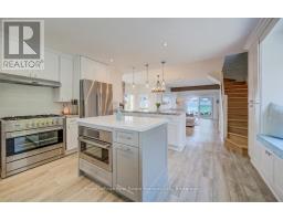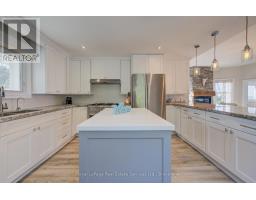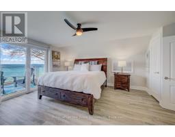Exquisite Grimsby Sundrenched Lakefront Retreat: Where Luxury Meets the Water's Edge. Welcome to a truly rare offering on the shores of Lake Ontario. This magnificent refreshed, updated three-bedroom lakefront home in the heart of Grimsby is a masterclass in coastal-inspired luxury...meticulously designed to offer panoramic water views from nearly every vantage point. A serene sanctuary/entertainer's paradise provides unmatched tranquility and sophistication. MAIN LEVEL is Bright, airy, open-concept w gourmet chef's kitchen featuring high-end SS appliances, electric blinds, tall pantry, a professional-grade gas stove, granite tops T/O, island w storage and peninsula eating area and window. The adjacent dining room featuring a majestic gas stone fireplace and flows effortlessly into the living area w BONUS large understairs storage room. Main floor also offers new flooring throughout, blinds, new oak stairs, an updated full three-piece bathroom, and a spacious laundry room plus XL patio doors to rear lounge and side door to BBQ/eating area. UPPER LEVEL features 3 good sized bedrooms. Primary retreat serves as a true escape, complete with direct access to a private upper deck with new 'tilt and open' patio doors w retractable screen. Two additional bedrooms provide ample space for guests or a home office. Full four-piece bathroom completes. The exterior is defined by its signature wraparound porch and deck, offering multiple zones for alfresco dining or simply soaking in the unobstructed views of CN Tower on a clear day.Rear yard w steps down to your private beach. Oversized 2 car garage w side door entry and industrial shelving/open rafters for storage. 3 car cement drive plus street parking. Instant hot water, exterior outlets and gas line and cute garden shed. Located just minutes from the QEW, vibrant shops and dining. Grimsby-on-the-Lake is the gateway to Niagara's wine country.Easy commute to Hamilton and the GTA. Great Neighbors/community! Long close available. (id:47351)