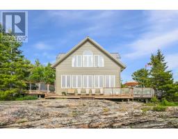 Welcome to Three Tree Island - An iconic & idyllic island retreat, Three Tree Island offers the rare opportunity to own a piece of Georgian Bays storied landscape. Featured in Cottage Life magazine, this majestic property combines timeless natural beauty with refined craftsmanship & total seclusion, an unmatched private oasis in the heart of Ontario's cottage country. Built by renowned local craftsman Ron Bowman, the islands main residence blends rustic charm with modern comfort, offering 3 bedrooms, 2 bathrooms & panoramic water views from every room. The primary suite is a true sanctuary, where oversized windows create the illusion of floating on the Bay itself. A separate bunkie with an additional bathroom provides extra accommodation for guests, along with an outdoor shower, sauna & hot tub that complete the spa-like experience. Strategically located just 3 minutes from municipal docks & 5 minutes from Parry Sound Harbour, access to town is effortless yet the island feels worlds away. Enjoy an afternoon at the nearby Parry Sound Golf Club, then return to wave at the Island Queen, passing cruise ships & Coast Guard vessels gliding by in the surrounding waters. Soak in dramatic western-facing views down the length of Georgian Bay and bask in unforgettable sunsets from the expansive decks, perfect for entertaining friends and family. With no neighbours in sight, extreme privacy & a granite shoreline hugging the island's perimeter, this is the perfect place to enjoy the sun, stars & Northern Lights.The property is offered fully furnished & features a commercial-grade steel docking system on the leeward side of the island, capable of accommodating larger vessels. Stay connected with full electricity & reliable internet, making it ideal for remote work or year-round escape. Whether you're swimming off the rocks, unwinding in the sauna or gazing at the endless water views, Three Tree Island is an exceptional, once-in-a-lifetime offering. Sunset lovers take note. (id:47351)