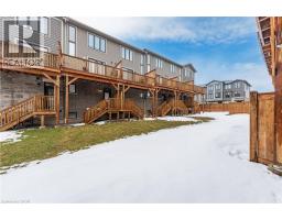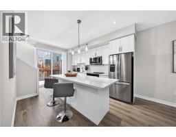 Welcome to this exceptional, freshly painted, move-in ready townhome nestled in one of Cambridge’s most desirable communities. Thoughtfully designed for modern living, this bright and beautifully appointed home features 9 ft ceilings, elegant finishes, and a spacious open-concept layout that seamlessly blends style, comfort, and everyday functionality. Over 1900 sqft of total Finished living space. Perfect for first-time buyers, growing families, or professionals. The main living level impresses with an abundance of natural light streaming through oversized windows, highlighting a warm and inviting living space anchored by a sleek electric fireplace. The contemporary white kitchen is both stylish and practical, showcasing quartz countertops, a large center island with breakfast seating, stainless steel appliances, subway tile backsplash, and ample cabinetry, all complemented by convenient roll-down blinds. Step outside to the private rear deck with privacy side panels, offering a peaceful retreat for relaxing or entertaining. A hardwood staircase leads to the upper level where three generously sized bedrooms provide comfort and versatility, each featuring large windows and neutral décor. The 4-piece bathroom includes a quartz vanity, soaker tub, and ceramic tile shower surround. Excellent location approximately 35 minutes to Mississauga, 15 minutes to University of Waterloo and Wilfrid Laurier University, and 20 minutes to University of Guelph. Walking distance to Walmart, Home Depot, Tim Hortons, Canadian Tire, Starbucks, and numerous shops, dining, and everyday amenities. (id:47351)