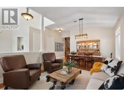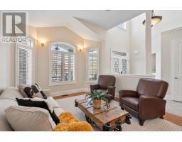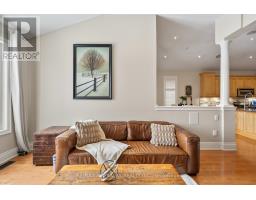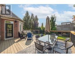 This 2,827 sq. ft (per MPAC) 3-bedroom bungaloft in the gated Emerald Hills Golf Course Course community offers low-maintenance living with condo fees of $982.43/month, covering water, sewage, community snow removal and access to the clubhouse, pool, hot tub, sauna, tennis courts, exercise room, meeting room, party room with kitchen, and outdoor children's playground and MORE! The exterior features an appealing, landscaped front entry with decorative double glass doors, a transom window, and a brick-and-stone facade with stucco accents. It also includes an irrigation system, powder-coated steel fully fenced yard, a large raised deck, and a double car garage. Inside, the main floor boasts a spacious foyer and 11' ceilings. The formal living room features a bayed window wall, flooding the space with natural light. Hardwood floors, California-style shutters, and extended height interior doors enhance the main living areas. The dining room enjoys a large window, while the kitchen offers maple cabinetry, granite countertops, stainless steel appliances, including a new fridge (2024). The breakfast area has a garden door leading to the deck, and the family room includes a gas fireplace, pot lights, and a large window overlooking the yard. The spacious principal bedroom has hardwood flooring, a tray ceiling, large windows, two walk-in closets with custom organizers, a seating area, and access to the deck. The ensuite includes a soaker tub, shower, and heated floors. Additionally, there is a second bedroom, a 4-piece bathroom, and a main floor laundry room with direct garage access. Upstairs, a grand curved staircase leads to the loft bonus room overlooking the main floor. The third bedroom features a large window and closet, and a 4-piece bath completes the upper level. Other: Irrigation System (water incl in fees), Fridge, Dryer and AC 2024, Roof approx 5 years, Family Room and Principal Bedroom windows replaced, Furnace 2018. (id:47351)