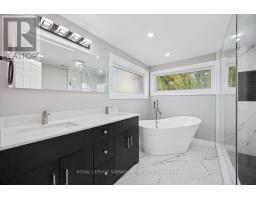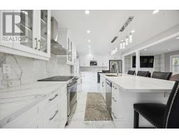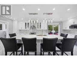 Welcome to Mitchell Corners in the heart of Clarington - where modern luxury meets timeless country charm. This beautifully renovated 5+1 bedroom, 4-bathroom home is tucked away on a quiet side street, offering the perfect blend of sophistication,functionality, and serene living. From the moment you arrive, the oversized wrap-around driveway - with space for 12+ vehicles- and stamped concrete walkway and porch create a warm, inviting first impression. Step inside to discover a pristine, open-concept main floor that seamlessly connects the kitchen, dining, and living areas - ideal for everyday living and effortless entertaining. At the heart of the home is the brand-new (2025) chef's kitchen, a true showstopper featuring an oversized quartz island with seating for eight, matching quartz countertops and backsplash, soft-close cabinetry with glass display panels, a built-in beverage centre and microwave, and sleek pot lighting to accent every detail. The spacious dining and living areas are anchored by a custom-designed TV wall unit, while 24x24 luxury tiles flow throughout the main level, transitioning to new vinyl flooring in the fully finished basement - offering style and durability. Upstairs, a striking glass-panel staircase framed by a fluted accent wall and crowned with a grand chandelier adds a touch of refined elegance and warmth. All four bathrooms have been thoughtfully renovated with contemporary fixtures and quality finishes, and a fresh coat of paint throughout enhances the home's bright, airy ambiance. Enjoy peace of mind with a new furnace and AC (2022), upgraded lighting throughout the home,convenient upper-level laundry, and ample space ideal for large or multi-generational families. This move-in-ready home is a rare gem in Mitchell Corners - offering the best of both worlds: elevated, modern design in a peaceful, country setting just minutes from highways, amenities, and top-rated schools. (id:47351)
