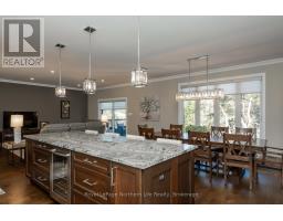 Welcome to this stunning all-brick luxury home nestled in one of North Bays most prestigious and sought-after neighborhoods -- the new subdivision on Airport Hill. Surrounded by great families and a warm, welcoming community, this meticulously maintained property offers the perfect blend of elegance, comfort, and convenience. Step through the grand, light-filled entrance and be captivated by the spacious open-concept design featuring a massive living, dining, and kitchen area anchored by a 10-foot island with a built-in bar fridge. The chef-inspired kitchen is a showstopper with granite countertops, an abundance of cabinetry, and a pot filler at the stove -- ideal for everyday living or entertaining in style. Oversized windows flood the space with natural light, creating a bright and airy ambiance throughout. The spacious primary bedroom boasts barn doors that lead into a luxurious en suite with double sinks, a large walk-in shower, and an expansive walk-in closet. The main level also includes a second generous bedroom and a full bathroom. Downstairs, the fully finished walkout basement opens to a beautifully landscaped all-interlock backyard with serene forest views. The lower level features two more large bedrooms, a full bathroom, a dedicated office space with access to a massive storage room, and an impressive bar with granite countertops and a full-size fridge perfect for entertaining or extended family living. A custom wooden accent wall with an electric fireplace adds warmth and character. With a triple zone furnace (master bedroom, main floor and basement), crown molding, and gleaming hardwood floors throughout, every inch of this home has been thoughtfully designed with high-end finishes and comfort in mind. Don't miss your opportunity to own a truly exceptional home in one of North Bays finest communities. (id:47351)