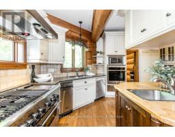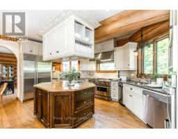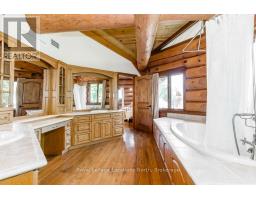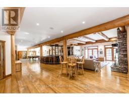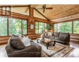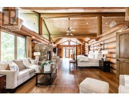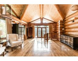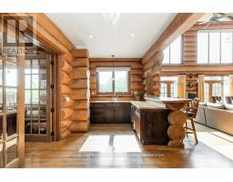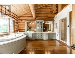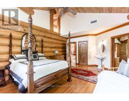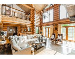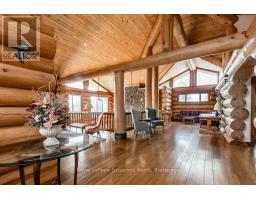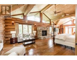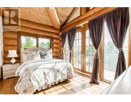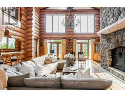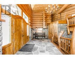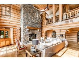 Welcome to one of Canada's most iconic luxury log homes, a rare Georgian Bay waterfront estate often described as the "Yellowstone of the North." Located at the very tip of Cedar Point on Georgian Bay, this one-of-a-kind waterfront mansion offers exceptional privacy, panoramic bay views & an irreplaceable point-of-land setting.Built in 2002 as a private resort-style retreat, this custom log estate sits on 4.37 acres with 412+ ft of shoreline, featuring both sandy & pebble beaches, a 90ft stone pier & an 80ft seasonal dock - ideal for boating, swimming & luxury waterfront living. With approximately 14,000 sq ft of living space, the home showcases master craftsmanship, soaring vaulted ceilings, exposed timber construction & uninterrupted water views from nearly every room.The main residence offers 8 bedrooms & 8 bathrooms, plus separate guest or staff quarters w/ 2 additional bedrooms & 2 bathrooms, making it ideal for multi-generational living, executive retreats or luxury hosting. A striking 20-ft grand foyer w/ hand-carved log doors & a rare carved centerpiece sets the tone for this architectural masterpiece.Designed for entertaining, the home features formal & casual living areas, a chef's kitchen with premium Dacor, Thermador & Sub-Zero appliances, butler's pantry, stone fireplaces, wet bar, private office & a spectacular main-floor primary suite with vaulted ceilings, spa-style ensuite & private waterfront deck. The walk-out lower level includes a newly constructed accessible bedroom w/ ensuite, games room, gym, home theatre & an unforgettable 20-seat English-style pub.Outdoors, enjoy landscaped grounds, gentle streams, cabana, private beach & an 8-person in-ground hot tub. Additional features include in-floor radiant heating, heated 4-car garage, cedar shingle roof, irrigation system, cobblestone driveway, Starlink high-speed internet & reliable cell service. A true Georgian Bay luxury estate, offering rare frontage, resort-level amenities & legacy-level valu (id:47351)