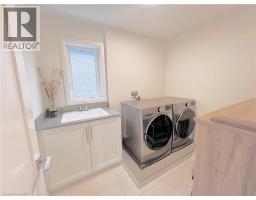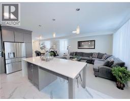 Welcome to this modern 2-storey detached home with 2,222 sq ft of luxurious living space, expertly crafted by Spallacci Homes & set in one of Hamilton’s most coveted neighbourhoods. This impressive residence blends timeless design, upscale finishes, & everyday functionality for a refined & comfortable family living. The elegant brick & stone exterior offers striking curb appeal & reflects the quality found throughout the home. Inside, a spacious main floor welcomes you with 9-foot ceilings, upgraded tile flooring throughout, and elegant oak stairs that add warmth and character. The layout features a bright, sun-filled living room, a comfortable family room, and a generous dining area, all flowing seamlessly to support both entertaining and daily life. At the heart of the home is the stunning extended custom kitchen, designed to impress. It showcases stainless steel appliances, a custom oversized island with waterfall quartz & backsplash, an undermount bowl sink, 42-inch upper cabinets, and 24-inch deep fridge upper cabinets with refined riser moulding. This kitchen is as functional as it is beautiful—ideal for gatherings and family meals alike. Upstairs, you’ll find four generously sized bedrooms and a full main bathroom. The primary bedroom serves as a private retreat with a spa-inspired five-piece ensuite bath and a spacious walk-in closet. In-suite laundry is also conveniently located on the second floor. The unfinished basement offers endless potential to personalize additional living space. Completing the home is a two-car attached garage with inside entry and a plug for electric vehicle charging, along with a double-wide driveway providing ample parking. Ideally located near top schools, parks, shopping centres, and major highways. Sqft & room sizes are approximate. Property not assessed by MPAC as of list date. (id:47351)