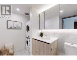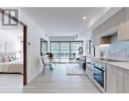 Luxury condo The Lakefront featuring a rarely offered south-facing 1+1 unit. The den with a glass sliding door can be used as a second bedroom, home office, or gaming room. Boasting 9' ceilings, wall-to-wall wood flooring, high-end integrated appliances, and floor-to-ceiling windows that fill the space with natural light. The bathroom and laundry area are efficiently combined for a spacious and practical layout. Thoughtfully designed layout with no wasted space. Enjoy over 23,000 sq. ft. of state-of-the-art amenities, including a Fitness Centre, Indoor Pool, Sauna, Theatre, Study Room with WiFi, Kids' Playroom, Pet Spa, Outdoor Lounge, 24-hour Concierge, Guest Suites, and more. The Lakefront is ideally located in the vibrant West Block, anchored by a 50,000 sq. ft. Loblaws flagship supermarket, 11,000 sq. ft. of restaurants, office space, and 87,000 sq. ft. of additional retail. Convenient access to public transit, parks, schools, the lakeshore, and all essential amenities. (id:47351)