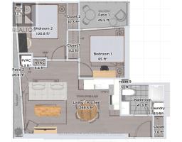 2 Bedroom 1 Bathroom 600 - 699 ft2