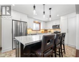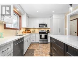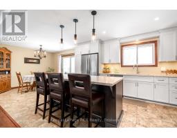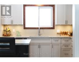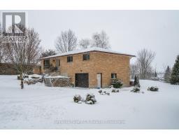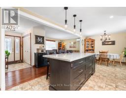 Custom built by Domm Construction in 1987 and proudly maintained by the original owners, this beautifully cared-for brick bungalow sits on a large lot on a quiet street in the welcoming community of Ayton. Set on a gentle hill, the home captures lovely countryside views while being within walking distance to local amenities.The bright main floor begins with a welcoming front entry and closet and leads into a stunning custom Hanover kitchen built in 2019. Designed with both style and function in mind, the kitchen features granite countertops, a large island, convenient stackable laundry, and a full appliance package. The dining area offers sliding doors to the back deck-perfect for enjoying the peaceful surroundings-while the living room features a large picture window that fills the space with natural light.Three comfortable bedrooms with closets, a 4-piece bathroom with a marble counter on a newer vanity, and a hallway linen closet complete the main level.The finished lower level provides excellent additional living space with a large family room featuring a custom brick propane fireplace and bar area-ideal for entertaining or relaxing. This level also includes a 2-piece bathroom, utility room, and direct access to the attached garage with newer garage door. Outside, the spacious lot has mature trees and includes a double-wide driveway and attached garage. Enjoy the benefits of private well and septic with no municipal water or sewer fees. Bonus features: 200 amp service, air exchanger, water softener & hot water tank owned, flexible closing, family room furniture included. Wightman fibre at road, and cable TV available. Located within walking distance to the amenities of Ayton such as Trixies saloon, Ayton Ayto, Canada Post, Ayton Food Mart, Mum's, Normanby Community School, and the scenic bridge overlooking the Ayton Mill Pond, this home offers the perfect blend of small-town living, space, and beautiful views. (id:47351)