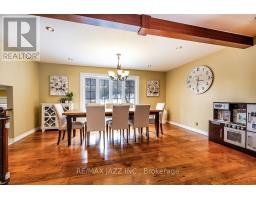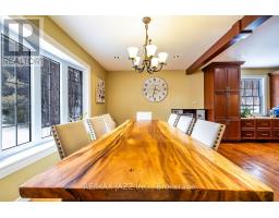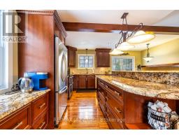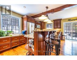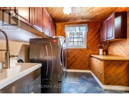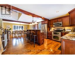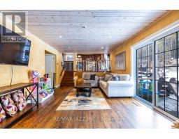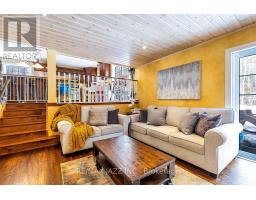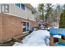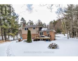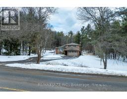 A nature lover's paradise! Nestled in picturesque Burketon Station, this idyllic property sits on a beautifully wooded 2 acre lot and features a long circular driveway leading to a spacious 1,918 sqft 5-level sidesplit. The stunning kitchen is a true chef's dream, complete with granite countertops, a large island with breakfast bar, custom cabinetry, gleaming hardwood floors, herringbone marble backsplash, stainless steel appliances, pot lighting, pantry with roll-outs, abundant pot and pan drawers, lazy Susan, beam ceilings, and a walk-out to the deck. The main floor family room offers hardwood flooring, pot lights, a walk-out to the deck, and a striking (non-functional) fireplace feature. Ceramic flooring carries through the front entry into the main floor powder room and a convenient laundry/mudroom combo offering both direct garage access and a walk-out to the side yard. The lower level boasts a massive rec room with an oak bar and bright above-grade windows, while the fifth level adds flexibility with a newly finished office, a fourth bedroom, and ample storage space. Upstairs, you'll find three generously sized bedrooms serviced by two beautifully updated bathrooms featuring solid surface countertops and vinyl flooring. The primary bedroom offers a walk-in closet and a spa-inspired ensuite with an oversized glass shower. New vinyl flooring runs throughout the upper-level bedrooms and bathrooms. Additional highlights include a fantastic 288 sqft outbuilding with a garage door (built in 2000), serene wooded views from every room, and complete backyard privacy - offering the perfect blend of nature, space, and tranquility to call home. (id:47351)