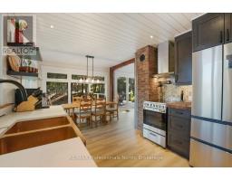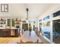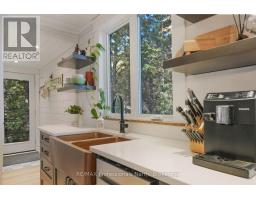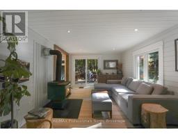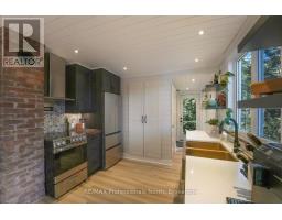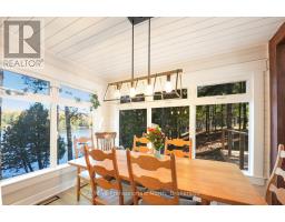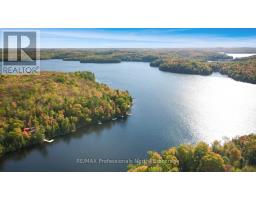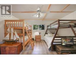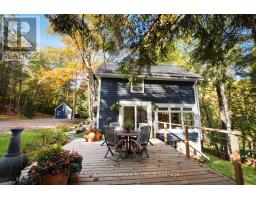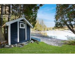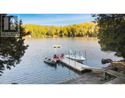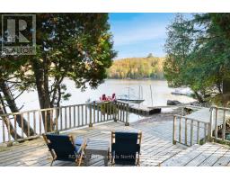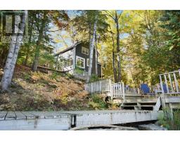 Welcome to this fully renovated 4-season waterfront home or cottage on sought-after Soyers Lake, part of Haliburton's desirable 5-lake chain. Offering 96 feet of owned frontage with a sand beach, private boat launch, and endless boating opportunities, this property is ideal as a year-round residence, family retreat, or investment with owned shoreline road allowance. The 2-storey home features 1017 sq. ft. of living space with 2 bedrooms and 2 bathrooms, forced air electric, and A/C. The main level offers an open-concept living and dining area flowing into the updated kitchen, complete with quartz countertops, mosaic backsplash, hammered copper sink, and pot filler. A 2-piece bath and multiple walkouts to large decks overlooking the water complete the main floor. Upstairs, find 2 generous bedrooms and a 3-piece bath, including a primary with walk-in closet. Outdoor living is exceptional with expansive decks at both the cottage and shoreline, lakeside storage shed, and a dock for swimming and boating. A detached, heated and insulated bunkie provides additional sleeping space and is connected to a garage/workshop for storage or hobbies. Enjoy year-round comfort with a drilled well and easy access on a municipal road. Centrally located between Haliburton and Minden for shopping, dining, and amenities. By boat, head to the Haliburton docks for the farmers market, dining, or groceries, enjoy sunsets and fine dining at Bonnie View Inn, or stop at Kates Burgers for ice cream and snacks. This mostly turn-key property is a rare opportunity to own a move-in ready home on a prime lake in Haliburton. (id:47351)