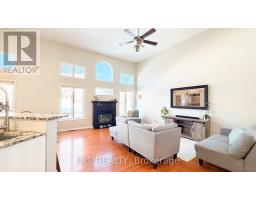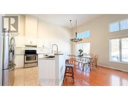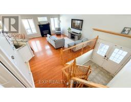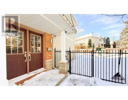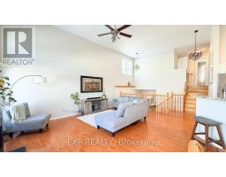 Exceptional Kanata Lakes Location - 4-Bedroom, 3-Bath End-Unit Townhome on a Premium Corner Lot. This stunning end-unit townhome offers a private entrance, oversized garage, and a thoughtfully designed layout that elevates everyday living. The bright, open-concept main level is highlighted by soaring 12-foot cathedral ceilings and gleaming hardwood floors throughout. A sun-filled family room with a cozy gas fireplace flows seamlessly into the dining area and gourmet kitchen, featuring granite countertops, stainless steel appliances, ample cabinetry, a breakfast bar, and pantry-ideal for both entertaining and daily living. The entrance level includes a versatile den or fourth bedroom, perfect for guests or a home office. Upstairs, you'll find two generously sized bedrooms, a well-appointed 4-piece ensuite/cheater bathroom, and a convenient enclosed office space. The fully finished lower level expands your living options with a comfortable family room, an additional bedroom, a full bathroom, and a laundry area. Set on a desirable corner lot, this home offers a private, oasis-like outdoor space-perfect for relaxing or entertaining family and friends. A rare opportunity to own a spacious, well-designed townhome in one of Kanata Lakes' most sought-after locations. (id:47351)