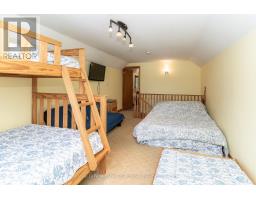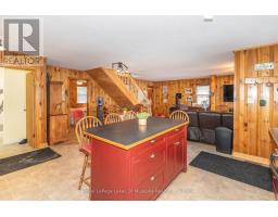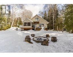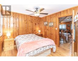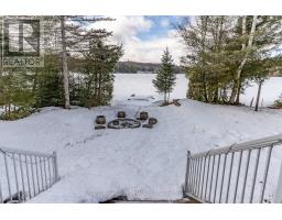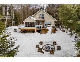 Wonderful west-facing, level lot on Wren Lake ~ a fully winterized family cottage with classic warm-wood interior and an open-concept living room, dining room and kitchen. The island in the kitchen makes quick meals and meal prep effortless while keeping everyone connected. Main level offers two comfortable bedrooms and a four-piece bath, plus a generous bedroom that opens to a deck with tranquil lake views. Two additional bedrooms upstairs include a convenient two-piece bath with ensuite privilege for the fourth bedroom. Relax and dine in the Muskoka room ~ ideal for casual meals or evening board games ~ with access to decks on either side for seamless indoor/outdoor living. The older garage and bunkie provide excellent potential and can be updated to suit extra accommodation or storage. Practical systems include a drilled well and a septic system installed in 2012. Step outside to a soft sand beach and gradual lake entry ~ perfect for swimmers of all ages - and enjoy paddling from your shoreline as part of the scenic Black River canoe route. Winter recreation is nearby with easy access to OFSC trails. Take in classic Muskoka sunsets from the deck and Muskoka room ~ a versatile, year-round retreat blending family-friendly layout with outdoor adventure. A rare west-facing shoreline opportunity ready for memories any season. (id:47351)