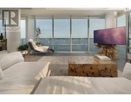 Welcome to luxury waterfront living at its finest. This fully furnished, upgraded executive corner suite-professionally designed by DreamSpace-is thoughtfully tailored for executives and relocating professionals seeking a turnkey, suitcase-ready residence. Offering approximately 1,500 sq. ft., this suite features unobstructed south-facing water views from every principal room. Designed with both comfort and sophistication in mind, the residence showcases 10-ft ceilings, 2 spacious bedrooms, and 2 elegantly appointed bathrooms. The open-concept layout is enhanced by floor-to-ceiling windows, premium finishes, and a refined interior palette. Dimmed lighting throughout creates a warm, ambient atmosphere suited for both relaxation and entertaining.The chef-inspired kitchen is equipped with high-end Miele appliances and flows seamlessly into the expansive living and dining areas. Step outside to two large private balconies facing the lake, offering breathtaking, unobstructed views with both sunrise and sunset exposures-an exceptional and rare waterfront experience. A private BBQ adds the convenience of outdoor cooking and entertaining from your own terrace.The primary suite serves as a tranquil retreat, complete with a spa-inspired ensuite featuring heated floors, a deep soaker tub, and elegant finishes designed for relaxation. The second bedroom offers flexibility for guests or a dedicated home office, ideal for today's executive lifestyle. Access to Pier 27's world-class amenities, including 24-hour concierge, indoor/outdoor pool, saunas and fitness centre Ideally located just steps from the waterfront, financial district, Union Station, fine dining, and major transit routes. Ideal for corporate relocations and long-term executive stays, this is a rare opportunity to secure a high-end, fully furnished, turnkey suite with truly exceptional panoramic waterfront views in one of Toronto's most exclusive addresses. Includes 1 parking space, 1 locker, and 1 bike locker. (id:47351)