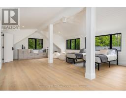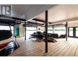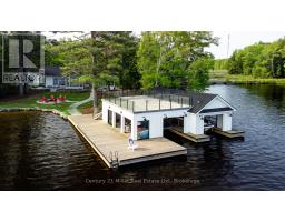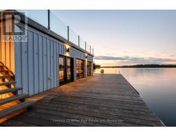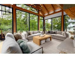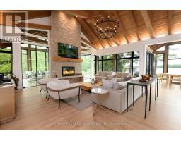 This luxuriously appointed custom-built retreat sits on a spectacular level lot with 500+ feet of pristine shoreline, offering exceptional privacy, breathtaking sunset views, and the quintessential Muskoka lifestyle. Built by the renowned Cobalt Custom Homes, the property showcases outstanding craftsmanship and thoughtful design. The main cottage is a masterclass in refined lakeside living, highlighted by soaring vaulted open-beam ceilings, a striking double-sided limestone fireplace, and dramatic floor-to-ceiling windows that fill the interior with natural light while framing panoramic lake views. The gourmet kitchen is a chef's dream, fully equipped with Wolf and Sub-Zero appliances, butler pantry, and flows seamlessly into an expansive dining space anchored by an impressive harvest table-an ideal setting for gathering family and friends and truly the heart of cottage living. The cottage features six spacious bedrooms accommodating 20+ guests, including a private primary wing with a luxurious ensuite, oversized walk-in closet, and sliding doors leading to a tranquil patio. An inviting all-season Muskoka room allows you to enjoy the surrounding landscape comfortably all year. Additional guest accommodations include a two-bedroom bunkie, offering visitors their own relaxing retreat. The three-car garage is topped by a beautifully finished loft complete with a gym and extra sleeping quarters-perfect for overflow guests or a quiet escape after a day on the water. A two-slip boathouse with glass roll-up doors opens onto a generous dock ideal for swimming, sunbathing, and launching lake adventures. The elevated sundeck with glass railings provides sweeping views across the bay, an exceptional place to enjoy Muskoka's famous sunsets with a beverage. A short boat ride to Bala for shopping and dining-or a summer evening at The Kee. A year-round municipal road access, a drilled well, and a sandy lake bottom perfect for kids, creating a truly turn-key four-season sanctuary. (id:47351)