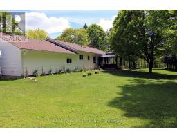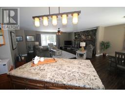 Extensively and beautifully renovated 3 bedroom -2 bathroom home in the heart of cottage country is not to be missed. This ranch style beauty has a long list of upgrades and features including open concept kitchen-dining-living room, propane kitchen stove, attractive cupboards and granite counter tops. High quality fixtures throughout, a spacious and bright primary bedroom with 3 piece ensuite, 2 spare bedrooms and a 4 piece main bathroom all on the main floor. The office with separate entrance could be used for a home based business or a handy mud room with access from the attached 1.5 car garage. The large 1.39 acre lot with 347 feet of frontage offers great privacy and is beautifully landscaped with gardens, a deck for entertaining, a flowing creek and two ponds with four waterfalls! The larger pond is swimmable with 6 feet depth off the dock, and a small beach. Other fine features include, forced air propane heat with central air conditioner, impressive stone fireplace with efficient air tight woodstove insert, Generac standby generator, attached garage plus a detached 17'X30' shop for all the tools and toys! A short walk to the grocery store, LCBO, gift store, restaurant, curling club, new municipal park and beach!. A short drive takes you to the boat launch and beach on Wilbermere Lake. Under 30 minutes gets you to Haliburton Village or 35 minutes to the Town of Bancroft for shopping and services. (id:47351)