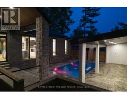 NEW CONSTRUCTION IN GRAND BEND | MATCHLESS & STUNNING BEYOND COMPARE | EXECUTIVE LEVEL LUXURY | UNPARALLELED FEATURES & QUALITY | HEATED SALT WATER POOL W/ WATERFALL | GUEST HOUSE | 6 BEDROOMS, 4 BATHROOMS, GYM, 2 BARS, 3 CAR GARAGE - the hit list is endless! In terms of new construction by the beach in Grand Bend, this surpasses as good as it gets. This exceptional custom masterpiece courtesy of renowned builders Gold Rock Homes is a definitive example of the phrase "next level". As a one of a kind family home or premium cottage, this is a house that must be seen to gain an understanding of the truly remarkable style & superior construction & finishing. The attentive & creative expert builder didn't miss a thing! This BRAND NEW home comes complete w/ a premium appliance package, movie theatre seating & HIFI package, & a 7 Year Tarion New Home Warranty among many other extras. From the second you pull into the property, you'll notice a plethora of compliments unique to this home & generally unfound in the Grand Bend resale marketplace. The excellent combination of brick & natural stone surrounds the entire house, a finish that is flawlessly accented by the 100% custom steel work in all of the gables & soffits, all of which is protected by a top-of-the-line diamond slate metal roof. This is also a smart-home, with everything run off your phone from the camera system, garage doors, & included sound system to the pool, the pool's one of a kind waterfall & fountain system, & the thermostats. However, its the sensational layout & show-stopping finishing that completes the package, w/ the soaring 2-tone coffered tray ceilings & the epic custom chef's kitchen loaded w/ built-in/cabinet ready appliances creating incomparable luxury level living. Coming in just shy of 4000 sq ft & including a proper gym & movie theater, you also get the 840 sq ft insulated 3 CAR garage w/ its separate lower level entrance plus another 700 sq ft in the guest house! Perfection at the beach! (id:47351)