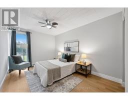Welcome to 102-105 Conroy Crescent, a bright, NEWLY RENOVATED, 2-bedroom condo backing onto peaceful green space and scenic trails that lead to the river! With a completely refreshed interior and a location surrounded by everyday conveniences, this home offers unbeatable value for first-time buyers, investors and downsizers alike. Step inside and you'll immediately notice the brand-new flooring and the tastefully renovated kitchen, featuring crisp white shaker cabinetry, butcher-block countertops, subway tile backsplash, modern black hardware and a sleek black sink. The thoughtful addition of open shelving and in-suite laundry makes this kitchen as functional as it is stylish. The spacious living and dining area is flooded with natural light from a full wall of windows. Freshly updated with neutral wide-plank flooring, this open-concept space is perfect for both relaxing and entertaining. Sliding doors lead to your large private balcony overlooking greenery-an ideal spot for your morning coffee or unwinding at the end of the day. The generously sized primary bedroom offers plenty of room for a king-size bed, while the second bedroom is perfect for guests, a home office or a roommate. A modern 4-piece bathroom completes the unit with updated vanity, fixtures and finishes. This condo includes an oversized parking spot located right next to the back building entrance, plus a convenient storage locker. The unit is situated on the main floor in a building with no elevator, making grocery trips and daily access a breeze. Just steps away is a bus stop with a direct route to the University of Guelph. You're also minutes from Stone Road Mall, LCBO, Shoppers, restaurants, banks, Dovercliffe Park and quick access to the Hanlon Parkway-perfect for commuters. Freshly renovated, move-in ready and set in a peaceful yet central location-this is an opportunity you won't want to miss! (id:47351)