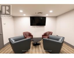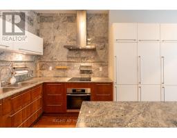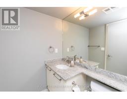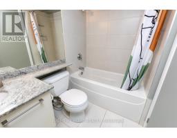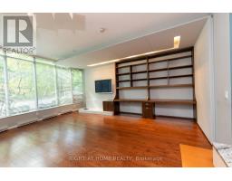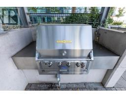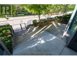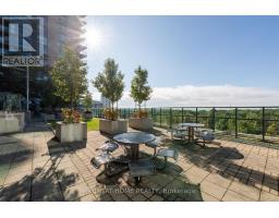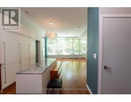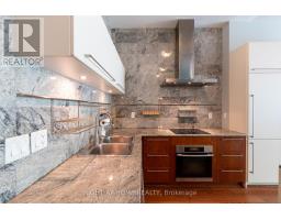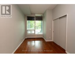 This one-of-a-kind and truly open-concept 864 sq. ft. suite, located steps from the lake and nearby parks, features all of the elements necessary for those seeking an urban luxury lifestyle. Option to use the private 2nd entrance which steps out to a 250+ sq. ft. exclusive terrace. This space is brimming with natural light from the southern exposure, floor-to-ceiling windows and massive 10ft ceilings. The deluxe kitchen, upgraded with granite backsplash and countertops, high-end appliances with custom cabinetry-paneled fronts, and ample storage space is perfect for the enthusiastic home chef. The 2nd full bathroom features a tub and shower, providing convenience and accommodation to guests. The open concept den features a custom built-in double desk and bookshelf. In the living room you'll find a wall-mounted TV with a built-in cabinet to tuck away your entertainment centre without clutter. The bedroom is efficiently designed with two generous closets and an ensuite bathroom equipped with a rain shower. This building offers numerous amenities, including both indoor and outdoor hot tubs, an indoor running track, extensive gym, large capacity party room, and much more. Parking stalls and lockers are often available for rent by other owners in the building. (id:47351)