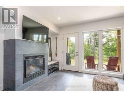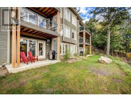 An incredible opportunity to own this beautiful condo built in 2019 and tucked within a private, quiet enclave in the heart of Huntsville's premier recreational area. Enjoy an exceptional lifestyle in this 2-bedroom, 2-bathroom condo featuring upscale finishes and a thoughtfully designed open-concept layout. The unit offers one set of stairs at the entry, with convenient single-level living thereafter and a walkout to the outdoors. Perfect for pet owners, the condo features durable high-end vinyl flooring and a walkout to your private ground-level patio overlooking a wall of trees. Designed for both comfort and style, the home includes in-floor heating, a cozy gas fireplace, glass shower in the ensuite, ample storage, and convenient in-suite laundry. Bright and sun-filled, the spacious layout is ideal for relaxing or entertaining after a day of skiing, golfing, boating, or exploring the outdoors. Enjoy quiet evenings on your patio while barbecuing or unwinding in nature. Owners have access to 300+ feet of sandy beachfront on beautiful Peninsula Lake-part of Huntsville's renowned 4-lake chain-complete with a beach volleyball court and playground. The property is located just down the street from Hidden Valley Highlands Ski Area, where the initiation fee is covered should you choose to become a member. The ski hill also offers extensive hiking and mountain biking trails throughout the spring, summer, and fall. Initiation fees are also covered at the nearby Mark O'Meara golf course, a prestigious ClubLink Platinum-level course. Ideally situated across the road from Deerhurst Resort on a quiet dead-end street, you can easily walk to restaurants, the beach, ski hill, mountain biking and hiking trails, and more.This is a fantastic low-maintenance option for a year-round residence or an alternative cottage retreat. This condo allows short term rentals and unit comes furnished and equipped. An inground pool is also planned for future construction on the property. (id:47351)