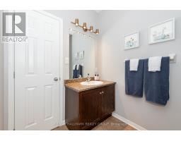 Sought-after enclave of adult-lifestyle bungalow townhomes on a premium lot backing on golf course. All-brick exterior, lovely landscaping & interlock stone walkway all lead to a home that radiates pride of ownership. Bright foyer with tile floor and a transom window. Guest bedroom is located at the front of the home, providing additional privacy, or use this space as a home office or den, with hardwd floor and cheater access to the main bath. Gleaming hardwd floors enhance the combined living and dining rm, with windows overlooking the tranquil back yard and golf course view beyond. Cooking will become an enjoyable task in the remodeled kitchen featuring tile floor, plenty of white Shaker-style cabinetry, tile backsplash and newer stainless-steel appliances. Window and garden door in the bright eating area provide an abundance of natural light and easy access to the deck. Generous primary bedroom with hardwood floor features a picture window offering peaceful views of the back yard. Walk-in closet and private ensuite bath will be welcome features. Main level laundry rm offers easy access to the garage. Huge window in an open staircase leads to the spacious lower level recreation rm with gas fireplace. A third bedroom and a third full bath make this space ideal for guests. Plenty of unfinished space remains for storage in the utility area. Last but not least! Extend leisure activities to the generous deck in a peaceful back yard setting offering privacy and spectacular views of the golf course. Additional seating area and perennial gardens offer a tranquil space to watch the seasons change. Don't miss these updates completed within the last year: roof, furnace, garage door, major appliances, kitchen backsplash, remodeled countertop, deck stairs. Premium golf course location at a competitive price. Assoc fee of $178 covers common area & road maintenance, snow removal on the street, garbage removal. 24-hrs for offers. (id:47351)