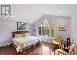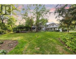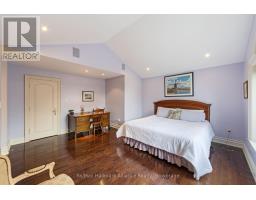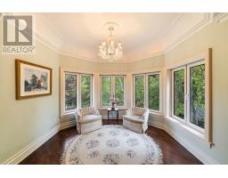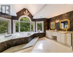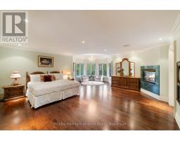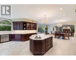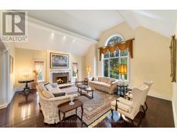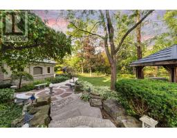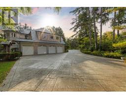 A Rare Executive gated 1.39-acre ravine estate in Morrison sought after community timeless elegance meets modern luxury this residence provides unmatched privacy, lush landscaping, & refined outdoor living. Through the custom 8-foot beveled glass entry doors, the soaring foyer sets the tone with emerald pearl granite floors, a handcrafted Austrian crystal chandelier on motorized lift, & a sweeping French Provincial staircase with wool Victorian Tapestry runner. The main floor boasts elegant formal living & dining rooms with hand-carved marble fireplaces, cathedral ceilings, plaster mouldings, & Palladian windows framing ravine views. A richly appointed library & office feature maple plank flooring, crown moulding, & custom draperies. The family room offers panoramic vistas & a mahogany fireplace, while the chefs Hawthorne kitchen impresses with cherry cabinetry, granite surfaces, premium appliances, & a walkout to the terrace. Upstairs, the luxurious primary suite includes a two-way fireplace, custom lighting, & a walk-in closet with attic access. The spa-inspired ensuite offers heated floors, Jacuzzi air tub, granite shower, & Strass crystal lighting. Three additional bedrooms each enjoy private ensuites, cathedral ceilings, & custom finishes. A versatile great room with terrace access & a full laundry suite complete this level. The lower level is an entertainers dream with a billiards & games room, full walnut bar, gym, media lounge, & spa retreat with sauna & steam shower. Radiant heated floors, & abundant storage enhance the space. Outdoors, the property is equally breathtaking with two stone gazebos joined by a large pergola, extensive walking paths, & a serene koi pond and a Japanese-inspired garden creating a private resort-like escape. With 4+1 bedrooms, 7 bathrooms, elevator access to all levels, multiple terraces, & a gated circular driveway, this estate offers over 10,000 sq. ft. of refined living in one of Oakville's most coveted neighbourhoods. (id:47351)