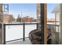 $674.40 MonthlyWelcome to a carefree lifestyle in a well managed and stylish luxury building? This bright and spacious open concept, two bedroom, two bathroom condo boasts nine foot ceilings and oversized windows that draw in plenty of natural light even on those dreary winter days. It's conveniently located near shopping, restaurants, recreation and parks in Brockville's North End. You will love the warmth underfoot of the in-floor radiant heat and the convenience of in-suite laundry and secure underground parking. The A/C and air handler were just cleaned and serviced and an upgraded thermostat installed and programmed. There is nothing to do except move in, relax, and enjoy your morning coffee on your private balcony. There is even a secure locker on the garage level to throw your luggage into when you're back from your winter getaway. This suite was recently repainted and new insulated blinds installed. Book your private showing today. (id:47351)