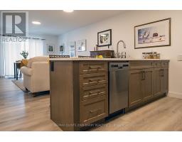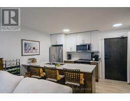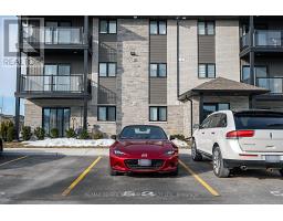 Welcome to Hillside Flats, a modern condo community completed in 2023 and thoughtfully designed with accessibility in mind. This purpose-built, ground-level one-bedroom unit offers 628 square feet of bright, functional living space in one of the area's most desirable locations. One of only four deemed accessible units in the building! Facing east, the condo is filled with beautiful morning sunlight, while the oversized 6' x 14' terrace remains cool and shaded in the afternoon-an ideal setting for relaxing or entertaining. The open concept layout seamlessly connects the kitchen, dining, and living areas, creating an inviting and practical flow. Designed for ease and comfort, the unit features a 36-inch-wide main entry door and 38-inch-wide interior doorways, along with a spacious 4 pc bathroom, in-suite laundry, and a dedicated utility room. The ground level location provides effortless access to your private patio and convenient everyday living. A rare and valuable highlight of this property is the inclusion of two side-by-side parking spaces (#125 and #126) - the only side-by-side configuration in the lot. Two vehicles can be parked comfortably next to each other, with a third accessible spot (#53) located near the front door of the unit. The ability to sell the parking spaces separately adds flexibility and investment potential. The secure building is beautifully landscaped and ideally situated close to shopping, dining, and essential amenities, with quick access to Highway 401 for commuters. Flexible closing is available, making this an excellent opportunity for first-time buyers, professional couples, downsizers, or investors seeking a unique and versatile property. (id:47351)