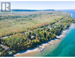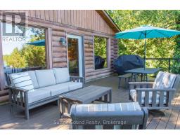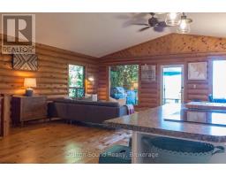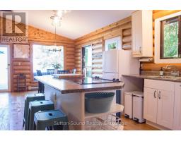Embrace year round living in this 3 bedroom, 2 bathroom log home perched on the waters of Georgian Bay. Panoramic views encompass Colpoys Bay, White Cloud Island, and Griffith Island. The open concept main level features expansive windows that frame the vistas, flowing seamlessly from kitchen to dining to living space. Cozy evenings by the fireplace and tranquil mornings sipping coffee as the water glistens become everyday rituals. The generous laundry/utility room includes abundant storage for gear, linens, and essentials. There is an outbuilding/workshop with hydro that offers room for tools, storage, or creative projects. A private bunkie with hydro sits at the waters edge ideal for guest space, a studio, or a quiet retreat. In 2021, significant updates were completed: new roof, deck & railings, eavestroughs with gutter guards, and a new dock was installed. Enjoy easy boat access via the nearby Big Bay boat launch. This property offers boating, kayaking, swimming, spectacular sunsets, and all season recreation at your doorstep and still close to amenities in Wiarton and Owen Sound. (id:47351)