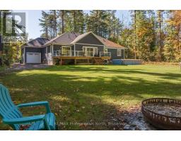 Welcome to Muskoka living at its best. Tucked into a quiet, no-through street within an exclusive enclave, this custom-built bungalow (just 3 years old) offers 2,200 sq. ft. of thoughtfully designed, one-level living on a private one-acre lot surrounded by mature trees.From the moment you walk in, the home feels bright, open, and connected to its surroundings. Large windows bring in natural light throughout the day while framing peaceful views of the forest beyond. With 9-ft ceilings and a well-planned layout, the space feels both expansive and comfortable. At the centre of the home is a beautifully crafted kitchen by Kas Kitchens, complete with quality finishes, a generous pantry, and an easy flow into the dining area and out to the deck, ideal for both everyday living and entertaining.The layout offers a great balance of privacy and function. The primary suite is set to one side of the home and features his-and-hers closets, while two additional bedrooms on the opposite side are perfect for family or guests. Built with efficiency and comfort in mind, the home includes a forced-air propane system, ICF foundation, spray-foam insulation, and an on-demand boiler. Radiant in-floor heating adds an extra level of comfort in the foyer, both tiled bathrooms, and the insulated three-car garage - making it a practical space year-round. The full, unfinished basement mirrors the main floor in size, with 9-ft ceilings and a cold cellar, offering excellent potential to expand. Set in a peaceful, nature-filled neighbourhood that still offers easy access to the highway, this location strikes a rare balance. Orillia is just 23 minutes away, Barrie 43 minutes, with Bracebridge and Gravenhurst also within easy reach.Whether you're looking for a full-time home or a Muskoka retreat, this property offers space, privacy, and a lifestyle that's hard to match. (id:47351)