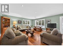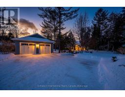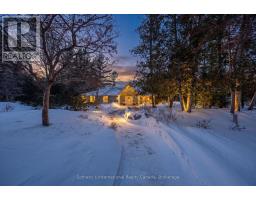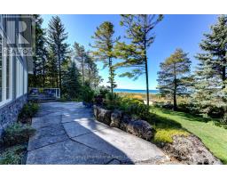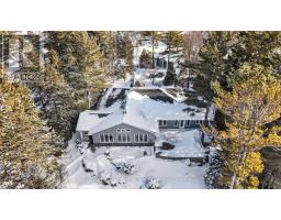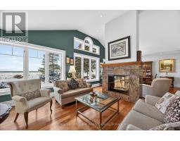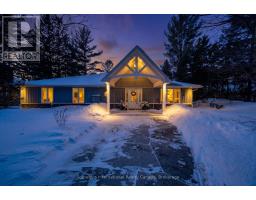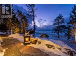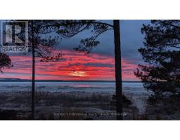Set along the iconic sandy shoreline of Wasaga Beach with immediate beach access, enhanced by the privacy of a quiet sandy road, this custom bungalow offers a rare blend of refined craftsmanship and natural beauty with panoramic views across Georgian Bay to Blue Mountain. Spectacular sunsets paint the sky creating breathtaking scenes in every season. Professionally landscaped grounds span over 1/2 an acre and are framed by mature trees, impressive limestone boulders and meandering walkways through perennial gardens creating a sanctuary that feels natural but refined. This one-floor residence of over 2,800 square feet is thoughtfully designed for effortless living and entertaining. Throughout the home, sunlight streams through oversized casement windows. The open-concept living and dining areas, enhanced by walnut flooring and a vaulted ceiling, are anchored by a striking dual-aspect marble-clad gas fireplace. The expansive gourmet kitchen features granite countertops, an oversized double sink, full-height cabinetry with under-cabinet lighting, a generous pantry and premium appliances including a BlueStar six-burner gas range and Miele fridge/freezer. The two-tiered prep/entertainment island provides seating for five or more. The primary suite is a private retreat that features bay views, access to a secluded deck, a walk-in closet with window, a spa-inspired ensuite with heated floors, granite counters and an oversized marble-tiled shower with granite bench, rainfall showerhead and body jets. Three additional large bedrooms and two three-piece bathrooms provide comfort for family or guests. Outdoor living is enhanced by an expansive lounging and dining deck offering breathtaking lake and stunning sunset vistas. An oversized detached two-car garage and large driveway provide ample parking. This beautiful and unique home ensures tranquil and pleasurable living immersed in the beauty of each season. (id:47351)