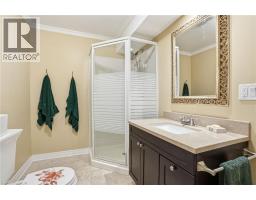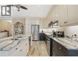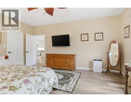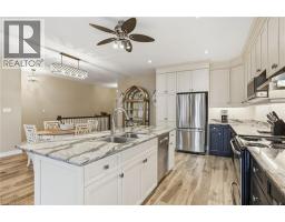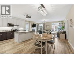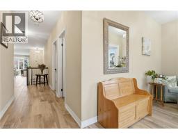Experience refined modern living at 104 Anastasia Boulevard in Smithville. Constructed in 2017 and thoughtfully enhanced with over $120,000 in premium upgrades since its acquisition in December of that year, this exceptional bungalow offers a seamless blend of contemporary design and everyday functionality. The expansive 1,727 sqft. main level is distinguished by 9-foot ceilings, creating a bright and welcoming atmosphere throughout. At its heart lies an open-concept living space anchored by a chef-inspired kitchen, complete with Cambria quartz countertops, floor-to-ceiling cabinetry with elegant decorative detailing, a central island, pantry, and soft-close drawers and cupboards. Sophisticated ceramic plank flooring extends across the entire main floor, ensuring a carpet-free interior, while both main-floor bathrooms-including the luxurious five-piece ensuite off the primary bedroom-feature matching Cambria quartz finishes. The professionally finished lower level offers approximately 613 sqft of finished space including a generously sized bedroom with large egress windows that invite abundant natural light, along with a stylish three-piece bathroom-ideal for guests, extended family, or a private home office. An additional 1,100 sqft. of unfinished space presents a rare opportunity to create a custom living area, fitness studio, or additional storage tailored to your needs. Outdoors, the property is equally impressive. The front and rear perennial gardens have garnered notable attention, having been featured in multiple publications and nominated for an award in September 2025. Inside, the seller has added thoughtful touches, including the conversion of the entry closet into an inviting reading nook or sitting area, complemented by a beautiful bay window that frames picturesque views of the meticulously landscaped front garden. (id:47351)