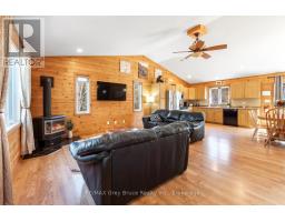 HOME / COTTAGE NEAR MILLER LAKE! Escape to the Bruce Peninsula and discover this inviting year-round home or cottage retreat near lake access, perfectly positioned between Tobermory and Lion's Head. Whether you're searching for a recreational property, seasonal getaway, or full-time residence, this property delivers comfort, space, and the ultimate four-season lifestyle.Offering just shy of 2,400 sq.ft. over two levels, with 4 bedrooms and 1.5 baths. The home welcomes you with warm tongue-and-groove wood finishes, vaulted ceilings, and large windows that fill the space with natural light. The open-concept layout is ideal for entertaining or relaxed cottage living, with a walkout from the dining area to a private back deck overlooking the yard. Start your mornings on the front deck with coffee in hand, surrounded by nature. Upstairs features three spacious bedrooms, each with closets, ceiling fans, and bright windows, while low-maintenance laminate flooring runs throughout. A well-appointed 4-piece bathroom includes tile flooring, a large vanity, and linen storage. The partially finished lower level adds excellent potential for additional living space, guest accommodations, or a home office, complete with a bedroom, 2-piece bath, family room with laundry, and mudroom - perfect for families. Enjoy evenings under the stars in the hot tub or around the fire pit. A detached garage and under-deck storage provide ample space for kayaks, paddleboards, and recreational gear. Located just minutes from public lake access on Miller Lake, known for its warm, sandy shoreline, swimming, kayaking, and boating, this property is a dream for outdoor enthusiasts. Close to the Bruce Peninsula National Park, the Bruce Trail, and countless beaches and trails, you'll enjoy endless hiking, cycling, and water activities. A rare opportunity to own a Bruce Peninsula cottage or home near the lake - ideal for personal use or as a recreational investment property with strong rental potential. (id:47351)