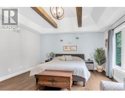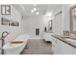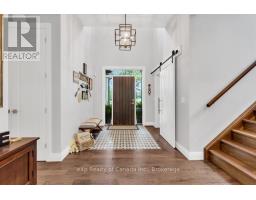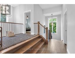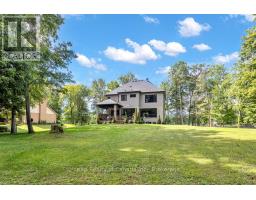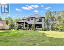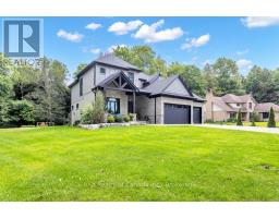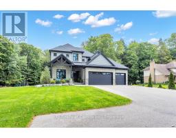 Discover this breathtaking custom-built family home, perfectly set on a private acre lot and crafted in 2018 with every detail in mind. Offering 4+1 bedrooms, 3.5 baths, and a triple car garage, this home combines luxury, function, and family-friendly charm. Step inside to a bright open-concept main floor where a chef-inspired kitchen steals the show with high-end appliances, island with granite counter and seating, and tiled backsplash. Gather in the sun-filled dining area or cozy up in the living room by the gas fireplace while enjoying stunning views of your private, treed backyard. Hickory hardwood floors flow throughout, with a convenient main floor laundry, executive office, and stylish powder room rounding out the space. Upstairs, retreat to the luxurious primary suite with exposed beams, a spa-like 5-piece ensuite with claw foot tub and rain shower, plus a massive walk-in closet. Three additional bedrooms include a unique secret passage connecting two rooms - an instant favourite for kids - alongside a beautiful 5-piece bath with granite countertops. The finished lower level offers endless possibilities with a spacious rec room (wired and plumbed for a wet bar), 3-piece bath, and an extra bedroom. Built-in speakers, stereo equipment, and a premium security system bring convenience and peace of mind. Outdoors is just as impressive - professionally landscaped with armour stone, sprinkler system, triple asphalt driveway, backup generator, covered deck, and inviting front patio. With plenty of room to add a pool or shop and direct access to a private nature trail, this property is the perfect blend of luxury and lifestyle. Don't miss your chance to call this extraordinary home yours! (id:47351)