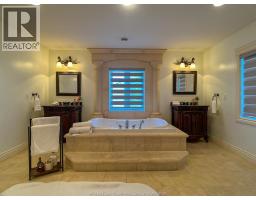 Experience luxury living in this stunning custom built two storey stone and brick home in a desirable Lakeshore neighbourhood. Featuring four spacious bedrooms and four and a half baths, this elegant residence offers an open concept main floor with a gourmet kitchen, granite island, family room with fireplace, formal dining area, private office, and mudroom. The upper level boasts a serene primary suite with walk-in closet, spa like ensuite, and adjoining sitting room, plus large additional bedrooms including one with its own ensuite and balcony. The finished basement offers a family room with fireplace, games area, and full bath. Outside, enjoy a private backyard oasis with a heated saltwater pool, stone patio, and landscaped grounds. Complete with a three car tandem garage, new hardwood floors, fresh paint, and new air conditioning, this home blends elegance, comfort, and modern living. (id:47351)