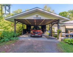 Welcome to this thoughtfully designed bungalow offering the ease and comfort of true one-floor living, set on just under an acre of flat, usable land. Tucked away on a quiet, low-traffic street, this property delivers peace and privacy while remaining only minutes from Highway 11 and the vibrant town centre of Bracebridge. Inside, you'll find a well-planned layout with everything conveniently at your fingertips. The main level features three generously sized bedrooms and a full bathroom with seamless entry, ideal for families, downsizers, or anyone seeking simplified living without sacrificing space. The kitchen is equipped with newer stainless steel appliances, blending modern functionality with a touch of country charm. Practicality shines with an oversized mudroom, seamlessly connected by a covered walkway to the 2008-built carport, offering two covered parking spaces and additional storage - a thoughtful Muskoka must-have for all seasons. The full basement adds exceptional versatility, complete with a second bathroom, living room, and a flexible layout that lends itself perfectly to guest accommodations, extended family living, a home office, or hobby space. Recent improvements include a metal roof (2019), updated electrical panel, two newer heat pump units providing efficient heating and cooling, and mostly new windows throughout - offering peace of mind for years to come.Outdoors, the property is surrounded by mature trees and landscaped gardens, with expansive level lawn space ideal for kids, pets, or relaxed outdoor entertaining. With direct access to OFSC snowmobile trails, year-round recreation truly begins at your doorstep.This home strikes the perfect balance of comfort, convenience, and charm - whether you're looking to downsize, start fresh, or enjoy a simpler lifestyle just outside of town. (id:47351)