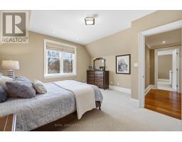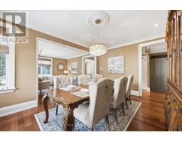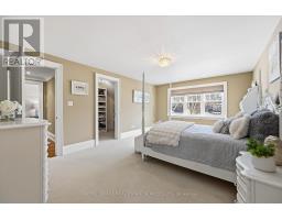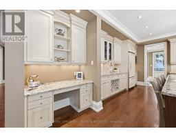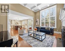 Designed by noted architect Gren Weis and built by Hallmark Homes, this distinguished Morrison residence reflects a level of architectural integrity and craftsmanship rarely replicated in today's custom market. Set on a beautiful 0.216 acre lot, the home offers appx. 5,500 SF of quality finished living space across three thoughtfully designed levels. The main floor showcases quarter-sawn cross-cut oak flooring, solid core doors, deep trim work and 9" baseboards, complemented by 9' ceilings and refined architectural detailing. A dramatic 13.5' coffered family room anchored by a traditional woodburning fireplace and cherry built-ins creates a warm focal point, framed by high-end architectural Kolbe windows that fill the space with natural light. The kitchen is designed for both everyday living and entertaining, featuring custom Andrew Moseley cabinetry, multi-tone granite surfaces, tumbled marble backsplash, premium appliances including a Viking six-burner gas range, and a generous 9' island with prep sink. Adjacent pantry and mudroom spaces provide everyday functionality with built-ins and direct garage access. Upstairs, the primary suite offers a private retreat with walk-out sun deck, walk-in closet, and a limestone ensuite with heated floor, Bain Ultra air tub and oversized rain shower. Two additional bedrooms each enjoy ensuite access. The fully finished lower level, with 9' ceilings and hydronic radiant heated floors, extends the living space with a large recreation area, custom bar, gym with resilient marmoleum flooring, and guest bedroom. Exterior highlights include premium cedar shake siding, copper architectural accents, Kolbe windows with UV protection, irrigation system and heated tandem garage. Located in one of Oakville's most established Morrison neighbourhoods, surrounded by mature streetscapes and prestigious custom homes. A rare combination of architectural pedigree, enduring craftsmanship and refined living space. (certain images digitally enhanced (id:47351)
