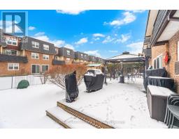 $471.82 MonthlyRarely offered ground level corner unit condo bungalow that truly lives like a private home. This spacious 2 bedroom plus den suite offers approximately 1,274 sq ft with a unique open layout rarely found in condominium living. The inviting living space features a sunken two level living room filled with natural light, highlighted by a striking exposed interior brick architectural column that adds warmth and architectural character rarely seen in condo design. A custom built-in wall unit adds both character and functional storage while enhancing the living space. From the living area, walk out to an exceptionally large private backyard deck and garden space, a rare feature for condo living that creates a seamless indoor outdoor feel and offers plenty of room for relaxing or entertaining. The split level living and dining layout provides natural separation of space while maintaining an open flow ideal for everyday living. Laminate flooring runs throughout the suite, offering a clean carpet free layout and enhancing the warm bungalow style feel. The home has been extensively upgraded throughout with quality finishes and thoughtful improvements reflecting pride of ownership. The upgraded kitchen features generous cabinetry, ample counter space, stainless steel appliances including a built in oven, microwave, and dishwasher, along with a stylish stone backsplash. Tucked away for added privacy, the versatile den is perfect for a home office or reading lounge, while both bedrooms are generously sized with excellent natural light. The well appointed bathroom includes a marble countertop vanity and an oversized glass shower. This suite also features the convenience of ensuite laundry, a sought after feature within the building. The expansive private outdoor space also includes a storage shed equipped with electrical power. Conveniently located in the heart of downtown Whitby close to shops, parks, trails, and quick access to Hwy 401. (id:47351)