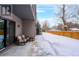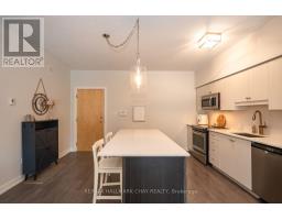 GROUND FLOOR CONDO WITH WALK OUT TO 10 x 15 PATIO AND LAWN AREA, BACKING ONTO TREES AND RIVER!...............Built in 2015, this unit is very modern, open, and bright with 9 ft ceilings................826 sq ft................Fresh paint throughout, quartz countertop, newer light fixtures and backsplash add to the nice feel you'll get in here................Unit is being sold by the original owner................Sought after building with a low turnover rate, and a very high percentage of owner-occupancy................Surface parking spot (#105) is just across from the main entry into building...............Short walk to shopping, dining, walking trails, and river............. (id:47351)