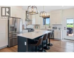Very impressive & stunning bungalow/ranch home with over 3000 sq feet (apprx) of fully finished space, built in 2020 by the current owner. Offering 3 main floor bedrooms & 2 lower level bedrooms, (one currently being used as a workout room). This incredible home has all the upgrades you would expect, with lots of exterior privacy too! Beautifully tiled & hardwood floors (carpet only on stairs), a large kitchen island with quartz counters, & brass pot filler over the stove. All tastefully done. The Primary bedroom offers an en-suite bath with dbl sinks, walk-in closet (with lock for possessions if needed). Laundry room is on the main floor, as well as another full 4 pc bath. A covered back porch with electrical completed for a hot tub - a serene setting to enjoy your morning coffee right off the kitchen patio doors. Lower level extends the living space including a breakfast bar area, rec room, the additional two bedrooms, & a 3rd full bath; perfect for out-of-town guests & extended family. There’s also an oversized heated garage, and very generous concrete parking pad for 5+ cars, as well as a sprinkler system and 2 hose bibs. The ring camera and security system stays and can be connected to your own network. Not to be missed is the great location across from Kingsville Golf & CC, nearby walking trails, and a children’s playground as well as a doggy park! This home is definitely on your list of must sees! Buyer to verify zoning, taxes and sizes. (id:47351)