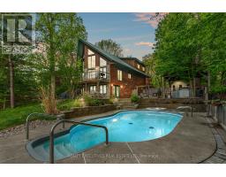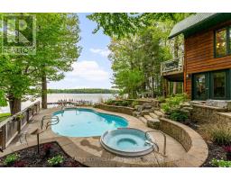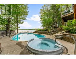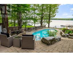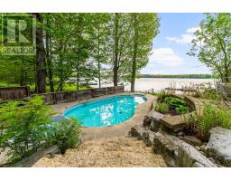 Welcome to scenic Hill Island in the heart of the Thousands Islands. Fully Furnished - Executive Lakehouse with year round access by road. One of a kind show stopper backyard oasis, over-looking Lake of the Isles part of the historic St Lawrence Seaway. This home spares no expenses starting with a property that's professionally landscaped featuring many flowers, perennial gardens, river rock, flagstone walkways & driveway, interlock, large rock formations, in-ground heated salt water pool with cascading spa, outdoor kitchen with BBQ, smoker, black stone grill, granite counter tops, gazebo, pool shed, garden shed and outdoor security system. The waterfront offers impeccable views with a permanent floating dock, electric boat lift, and high density polyethylene floating 2 winch system dock for personal watercrafts. A large detached heated garage that accommodates 2 vehicles as well as a second living space that can be used as a games room or additional sleeping quarters. This post & beam home is perfect for large family gatherings with natural hardwood & softwood flooring throughout, open concept kitchen, walk in pantry, granite countertops, stainless steel appliances and all natural wood cabinets. The main level also features a great room with propane fireplace, dining room with cathedral ceilings, a guest bedroom and a 5 pc bathroom with laundry. The second level features a loft, primary bedroom, an additional bedroom/office & 3 pc bathroom. Fully finished walk out basement with beautiful views, plenty of natural lighting, an epic sized family room, wood burning fireplace, an additional bedroom and bathroom perfect for your guests. High speed fibre optic internet for fast & reliable service. Easily located off Highway 137 just before the US border and a short drive to Gananoque along the scenic Thousand Islands Parkway. The area boasts natural beauty, scenic landscapes, and rich cultural history, making it a popular destination for tourism and recreation. (id:47351)