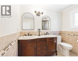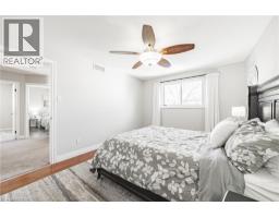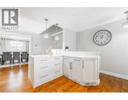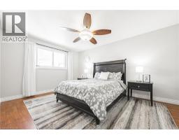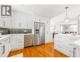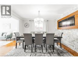 Beautifully maintained 4-bedroom, 2-bathroom backsplit with double garage, offering an impressive amount of finished living space across four levels in the prestigious Leckie Park community of Upper Stoney Creek. This home delivers a bright, functional layout with designated living, dining, and kitchen areas that create an ideal flow for everyday living and entertaining. The updated white kitchen showcases quartz countertops, stainless steel appliances, an island, custom cabinetry, crown moulding, and thoughtful storage touches, including a built-in spice drawer. The dining area is warm and inviting with hardwood floors throughout and ambient fireplace providing a turnkey setup for hosting family and friends. The upper level offers three comfortable bedrooms and a stylish 4-piece bathroom. The lower levels offer exceptional versatility, featuring a spacious family room with a gas fireplace, an additional bedroom, and a full 4-piece bathroom. The basement continues to impress with an updated laundry room, separate utility room, and an additional recreation space. Outside, the property boasts excellent curb appeal with a double-wide driveway and a fully fenced backyard complete with cedar decking, green space, garden shed and two electric retractable awnings for effortless comfort. The attached double garage is a standout feature with its epoxy finished flooring, clean, durable and ideal for storage or a workshop setup. Ideally located near parks, trails, grocery stores, restaurants, community centre, Cineplex theatres, and offering quick access to the Linc, Redhill, and QEW. A must see home with exceptional value! (id:47351)