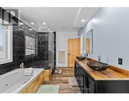 Beautifully built in 2023, this modern bungalow offers stylish living and a detached 1.5-car garage. Step into the welcoming front foyer, where heated tile floors extend seamlessly into the kitchen for added comfort and luxury. The bright living room features a cozy propane fireplace, creating a warm and inviting space to relax. The open-concept kitchen and dining area are perfect for entertaining, complete with a sleek island, ample counter space. The main floor also includes a convenient laundry room, a 2-piece bath, and a spacious primary bedroom with a walk-in closet and a luxurious 5-piece en-suite featuring a soaker tub. The fully finished walkout basement provides exceptional additional living space, offering a large recreation room, a utility room, two generous bedrooms-each with its own walk-in closet-and a 3-piece bath. Outdoors, enjoy a large deck overlooking the above-ground pool, built-in BBQ, fire pit, and a charming chicken coop. Located close to ATV trails, this property is ideal for outdoor enthusiasts seeking both comfort and adventure. (id:47351)