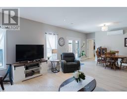 Welcome to your new home in the heart of Port Elgin! This townhouse condo offers 1410 square feet of convenience and luxury, perfectly suited to those looking to downsize without compromising on premium features. From the moment you step inside, the open-concept layout feels spacious and the quality finishings are evident. A bright guest room is located at the front of the home offering a private space for guests, with the 3 piece bathroom conveniently located just across the hall. From there, the home opens beautifully into a bright white kitchen with stainless steel appliances and sit up breakfast counter. The kitchen table is set in front of double patio doors, flowing into the bright and spacious living room. The nicely sized primary suite features a walk-in closet and full ensuite bathroom with tub/shower combo. This unit has a separate laundry room off the kitchen, which has been thoughtfully designed with custom built-ins to serve as a functional home office or hobby room - a rare find that compliments a remote worker or those with creative hobbies. The entire home is equipped with radiant in-floor heating for unparalleled winter comfort. An energy-efficient A/C split system with heat pump keeps you perfectly climate-controlled during the shoulder seasons. The home comes pre-equipped with gas lines for a future fireplace, kitchen stove, and BBQ. Outdoors, you'll enjoy a private patio with a covered section, offering a peaceful retreat regardless of the weather. Parking and storage are never an issue - this property boasts a double garage and an exclusive driveway with space for two additional vehicles. Just minutes from the world-class sunsets of Lake Huron and steps from the new Pryde Aquatic Centre, local fitness facilities, grocery stores, and vibrant restaurants, this home offers an incredible lifestyle in one of Ontario's most sought-after lakeside communities. (id:47351)
